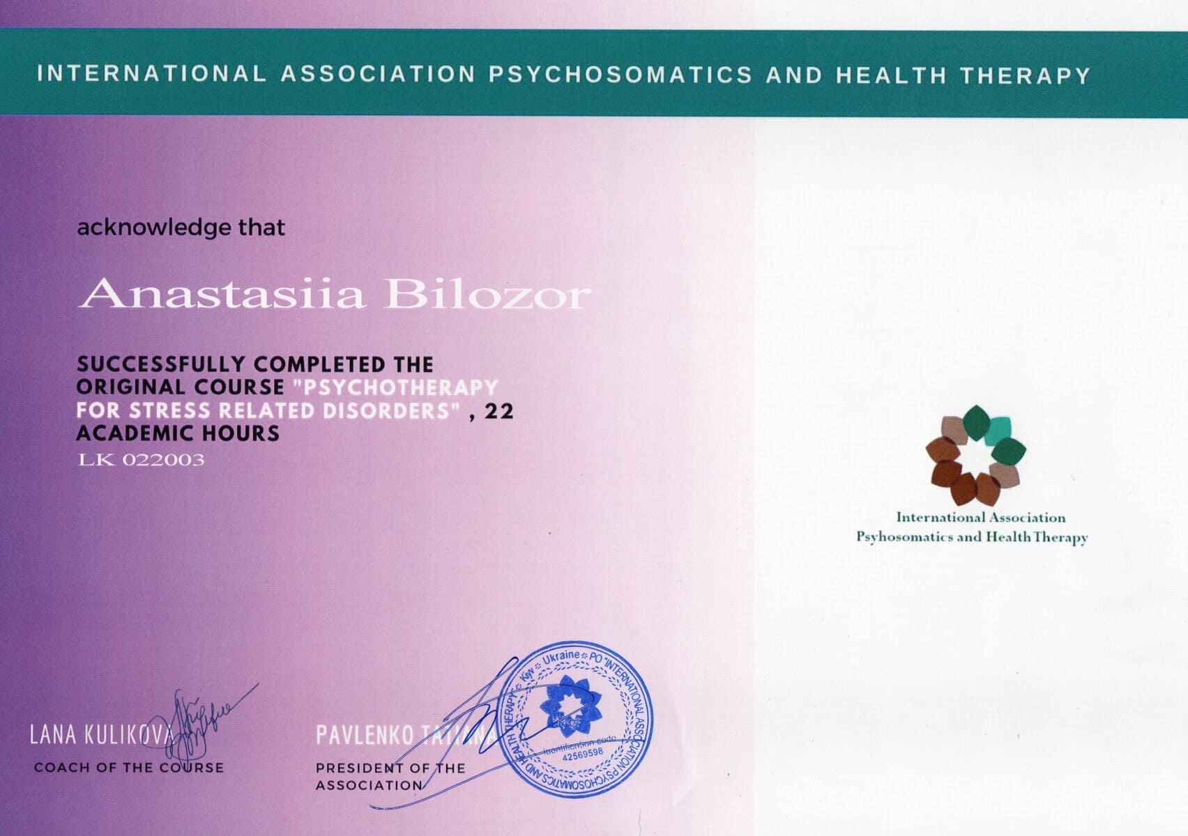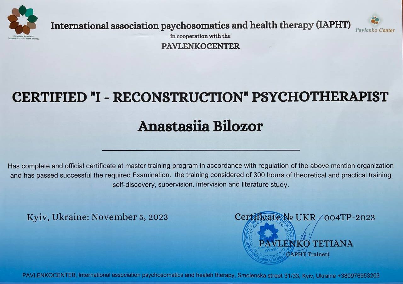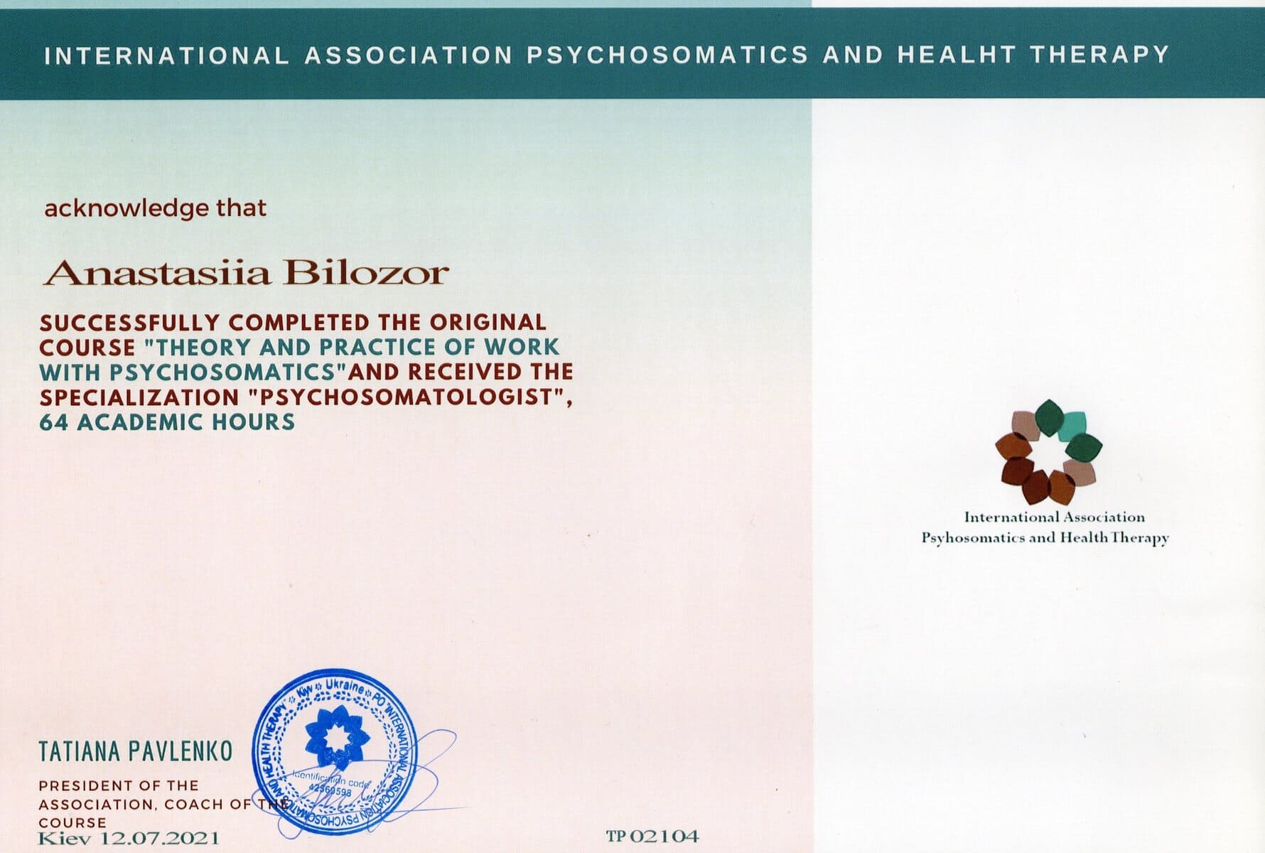 Ще з підліткового віку я хотіла стати психологом. Мій перший досвід роботи з психологом стався в 15 років і з того часу я закохана в цю професію.