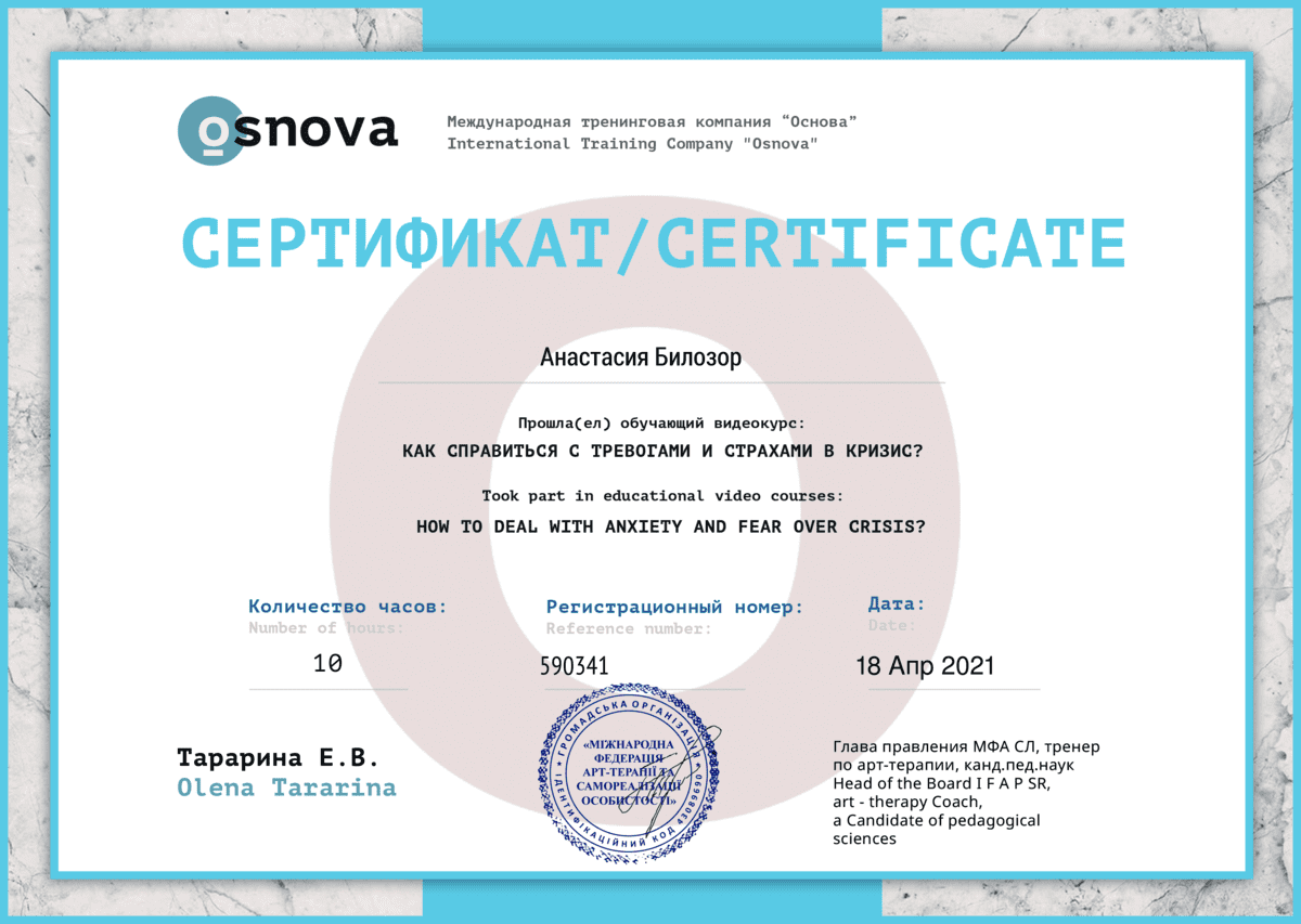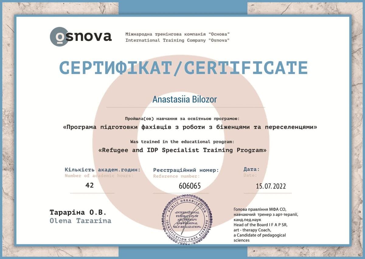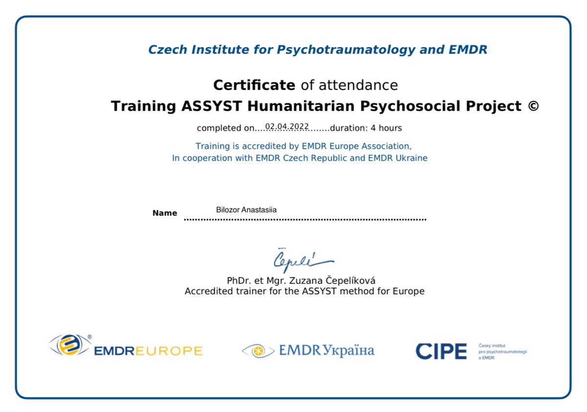 Ще з підліткового віку я хотіла стати психологом. Мій перший досвід роботи з психологом стався в 15 років і з того часу я закохана в цю професію.