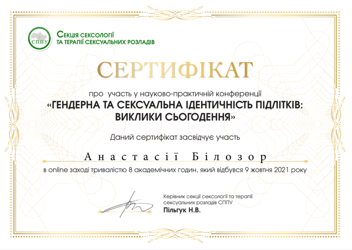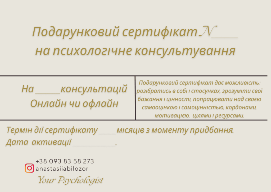 Ви можете придбати на подарунок сертифікат від 3 консультацій.
